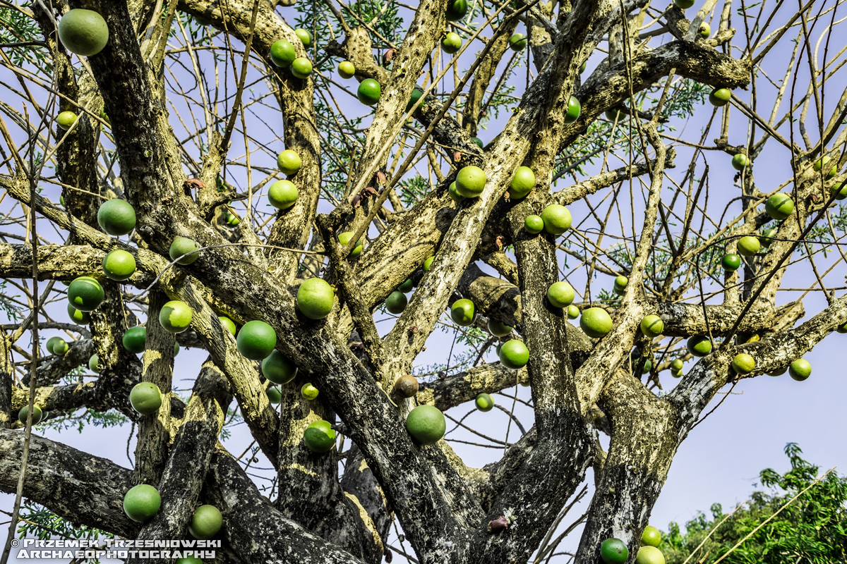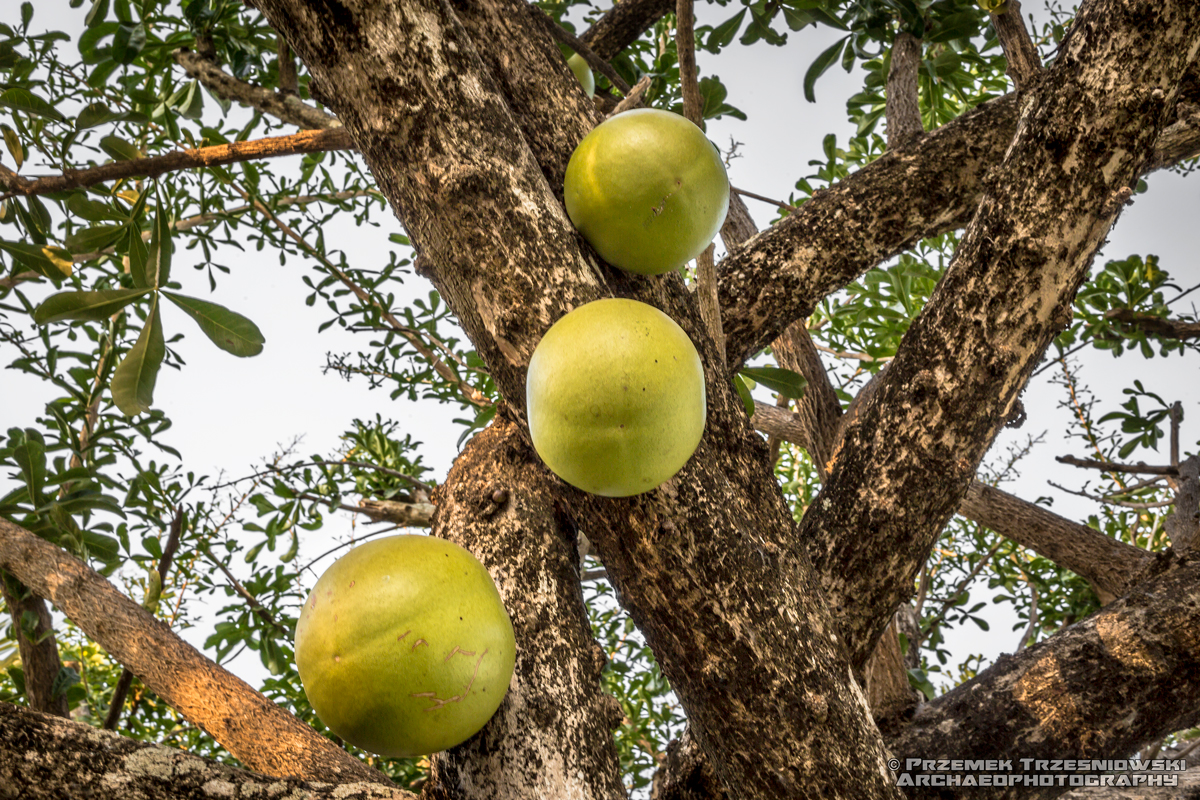 Dzbaniwo kalebasowe (Crescentia cujete) wykorzystywane już przez kultury preceramiczne jako tykwa. Stanowisko arcehologicznym Cihuatan w Salwadorze (fot: P.A. Trześniowski 2021)