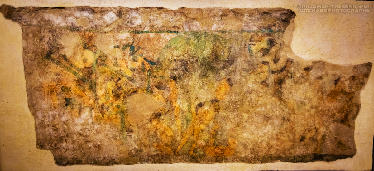 W październiku 2024 r. w trakcie 29 European Maya Conference w Perugii (Italia) dowiedzieliśmy się również o odkryciu po raz pierwszy gotowego pigmentu w kontekście archeologicznym. Maya Blue znaleziono w ofiarnym czultunie w Uxul (Niecka Mirador-Calakmul), pośród szczątków okrutnie torturowanych wojowników. Już w miesiąc później miałem szczęście oglądać te artefakty na wystawie czasowej w Muzeum Architektury Majów w San Francisco de Campeche…