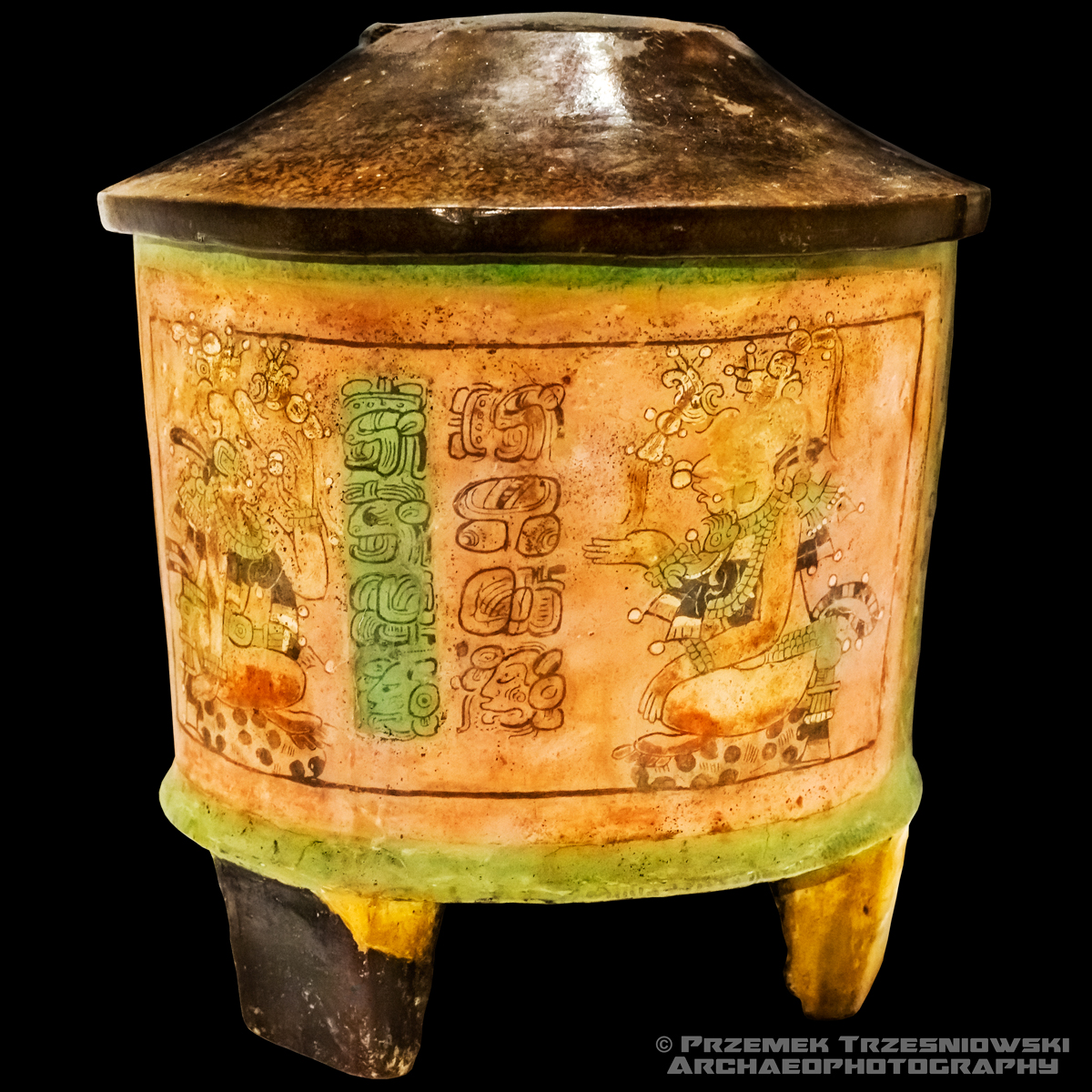 Naczynia to późnoklasyczne Cabrito Cream-polychrome i K’om polychrome oraz schyłkowoklasyczne Guajiro typu Cabrito Cream-polychrome. Ich badania prezentują potencjał analizy pierwiastków śladowych w identyfikacji dalekosiężnych interakcji społecznych w dawnej Mezoameryce. Dzięki spektrometrii masowej sprzężonej z plazmą wzbudzaną indukcyjnie i wprowadzaniem próbek za pomocą (LA-ICP-MS), używanej do detekcji i analizy ilościowej pierwiastków chemicznych ustalili, że pałygorskit w badanych próbkach mógł pochodzić z oddalonej o około 375 km cenoty w Sacalum na północnym Jukatanie (!), pomimo występowania prawdopodobnie znanego wtedy źródła minerału w Peten, odległego o jedyne 60 km na zachód.
